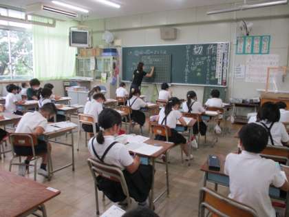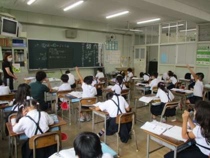 2年生が、かさの計算をしていました。担任の先生と一緒にノートを書きながら考えます。リットルとデシリットルの違いをおさらいしながら、熱心に取り組んでいました。答えがわかると、「わかった!」と嬉しそうな顔をして手をあげていました。