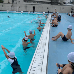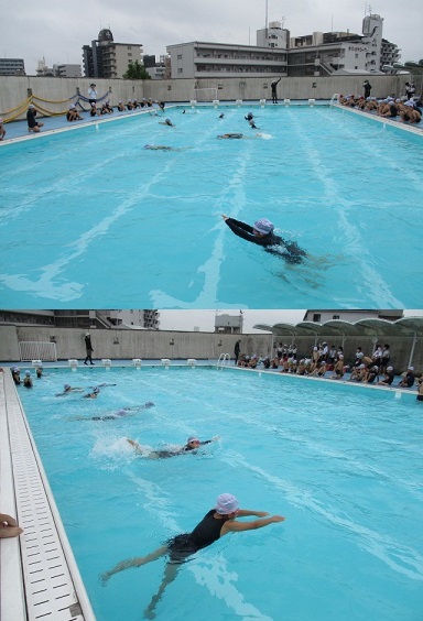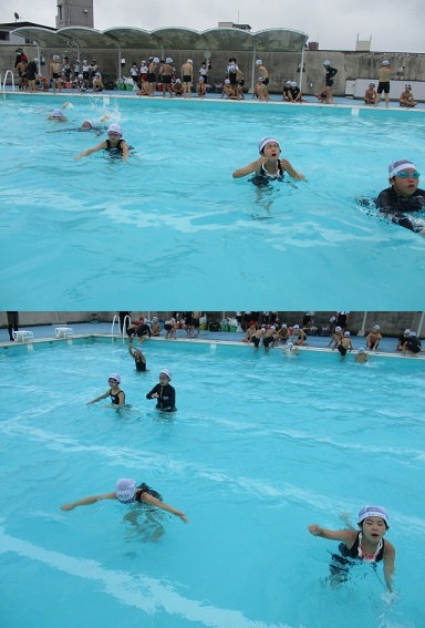 7月19日(火)曇天模様の中、3年生が水泳運動をしていました。
