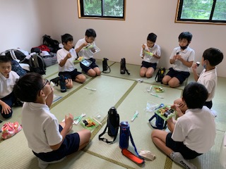あいにくの小雨模様のお天気で、とりあえず部屋に分かれて昼ご飯を食べました。