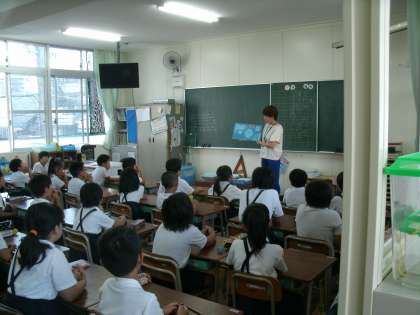 9月11日(水)の朝、3・4・5年生の各教室で、どんぐりさん(図書館ボランティア)に絵本の読み聞かせをしていただきました。子どもたちはとても静かに聞いて、お話の世界に入り込んでいました。