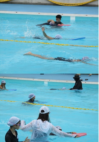 今日は、プール特別練習最終日でした。昨日は気温が高く中止となったため、2回目の特別練習でした。今日は22名が参加しました。それぞれの課題を練習し、最後に泳力測定を行いました。練習の成果が出て、ほとんどの児童が前より長く泳げるようになりました。みんな、がんばりました。
