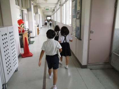 8月25日(木)今日は教科書の下巻や新しい学年になった時に使う教科書が配られました。図書室で順番に並んで先生から受け取ったら、手分けして教室に「うんしょ!おいしょ!」と運びます。かっこいい背中です。
