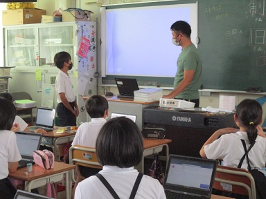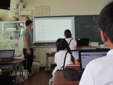 5年生がMicrosoft Teamsの音読機能の使い方を学んでいました。音読練習の宿題を出した時に、その様子を映像として記録し、先生に提出する方法です。また、その音読が正確であるかを機械が判別する機能の説明もありました。