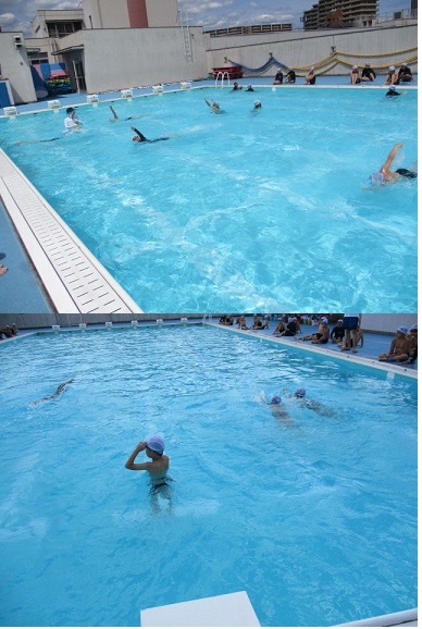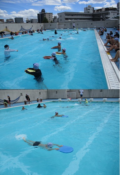 3年生がプール水泳を行いました。水慣れのあと、ビート板を使ってバタ足の練習、その後クロールの練習をしてから、泳力測定をしました。最後に宝探しをしました。晴天に恵まれ、最後のプールを楽しんでいました。