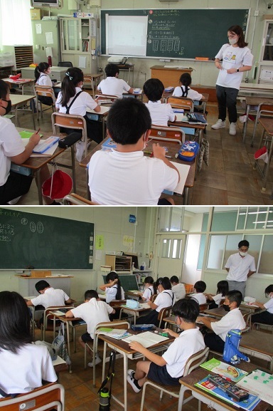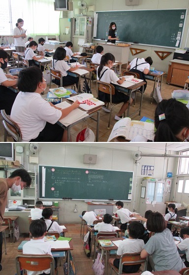 3クラスを4つのグループに分けて少人数で取り組んでいました。