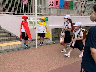 登校してきた子どもたちも「おはようございます。」と返して、温かい光景が見られました。