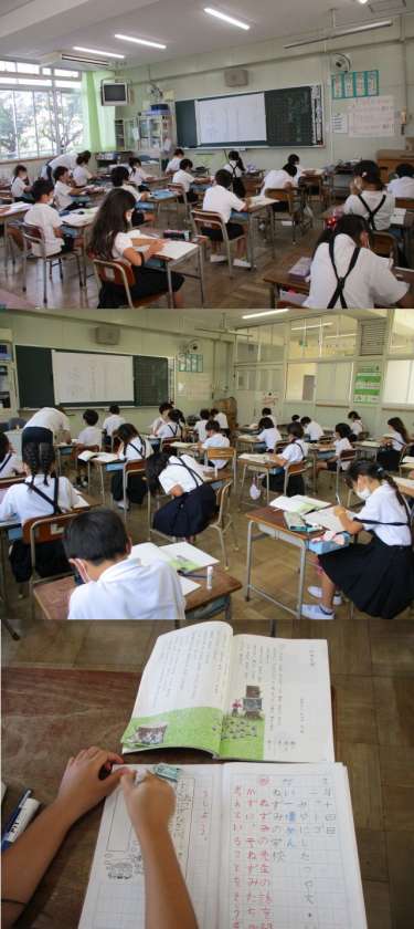 「ニャーゴ」第一場面、ねずみの学校の先生の話を聞かずに、子ねずみ達が何を考えているのか、一生懸命に想像して書いていました。