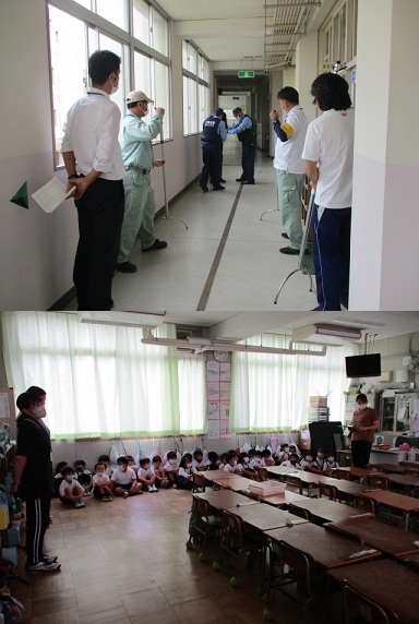 西淀川警察署の方に来ていただき、教職員の不審者対応の仕方や、教室にいる子どもたちの避難の仕方などを訓練しました。