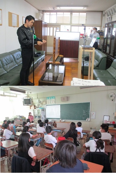 訓練後に、警察署員の方から避難の様子や日ごろの不審者への対応について、リモートでお話がありました。