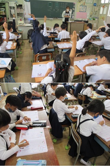 読み方や書き順、画数、使い方などをみんなで考え、活発に発表していました。