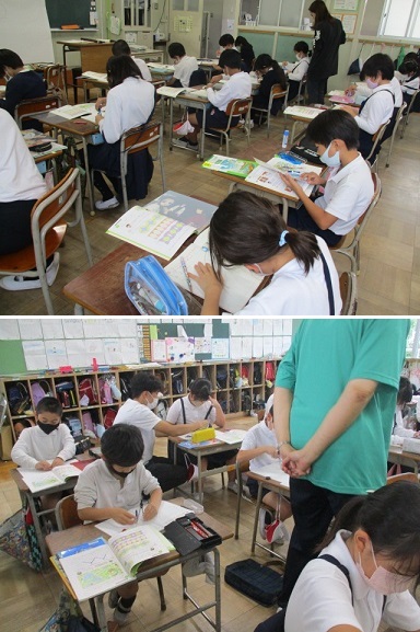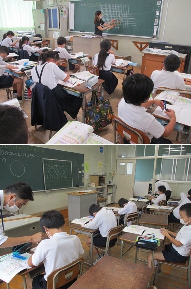 3年生が算数科の学習で、「コンパスを使って、もようづくり」に取り組んでいました。