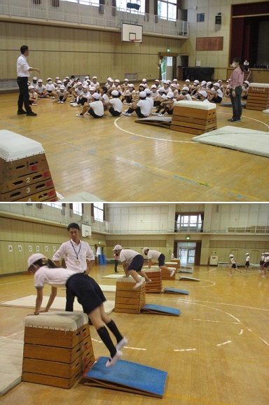 5年生が体育科の時間に講堂で、「とび箱運動」に取り組んでいました。