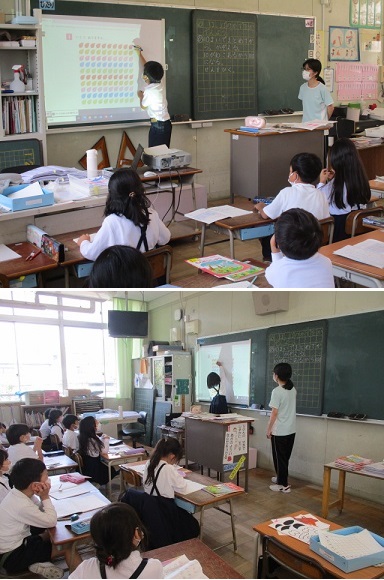 10月18日(火)1年生が算数科で、「はっぱのかずをかぞえよう」の学習をしていました。