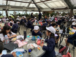 仲よく異学年の班で見学したあと、おなかも減ってきました。
