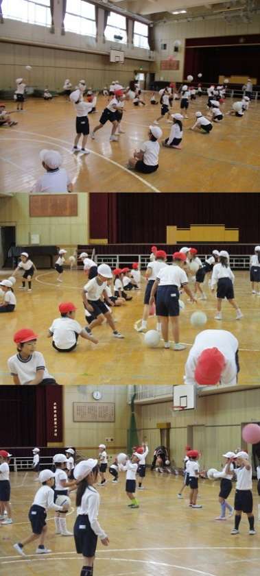 1年生が体育科の時間に、「ボールをつかったうんどうあそび」をしていました。