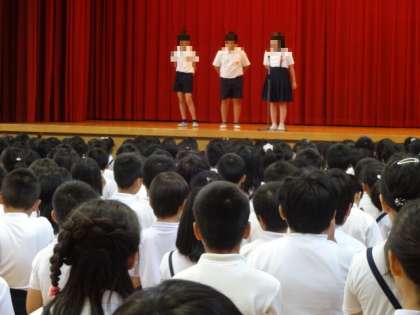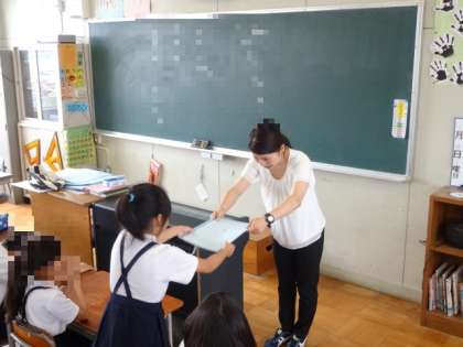 教室では、通知表や健康の記録を配られ、夏休みの過ごし方について担任の先生からお話がありました。