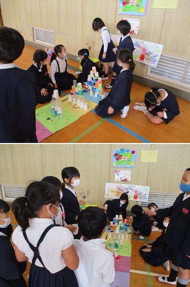 11月9日(水)2年生が生活科「おもちゃランド」で1年生に遊んでもらう活動を講堂でしていました。
