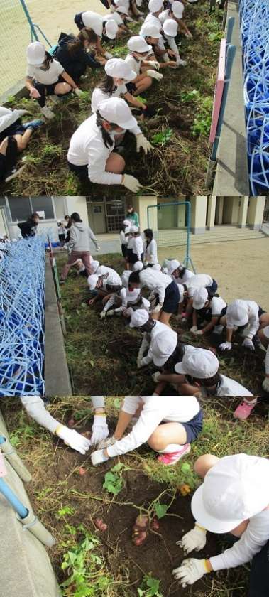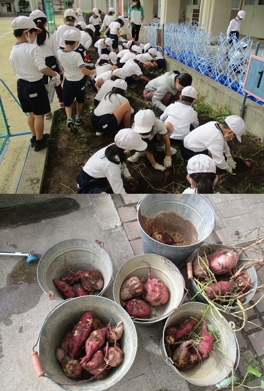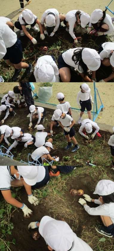 学習園で1学期から育てているサツマイモをみんなで掘り出しました。