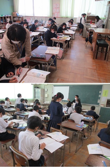 3年生が算数科の時間に、「かけ算の筆算」の学習をしていました。