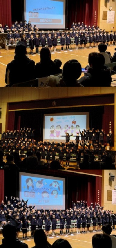 はじめのあいさつのあと、3年生、1年生と発表しました。