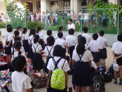 全員参加でハチ高原に向けて出発しました。すてきな思い出をたくさん作ってきてほしいと思います。朝早くから見送りに来てくださった保護者の皆様、ありがとうございました。