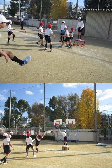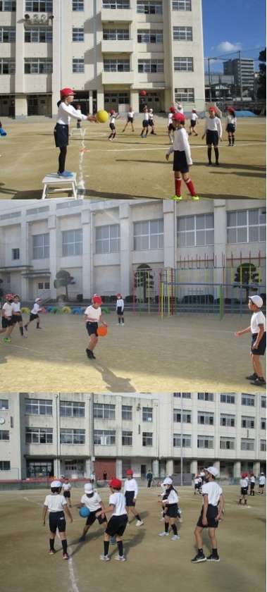 4年生が体育科の時間、運動場で「ポートボール」に取り組んでいました。