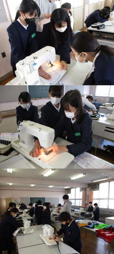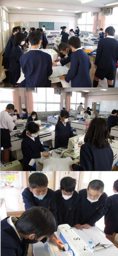 5年生が、ナップサック作りを行っていました。どの班も、みんなで協力して行っています。最初は、少しこわごわ緊張の様子でしたが、慣れてくるとスムーズにミシンをかけることができていました。担任の先生に1つ1つ確認しながら、一生懸命に取り組んでいました。完成が楽しみです!