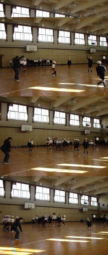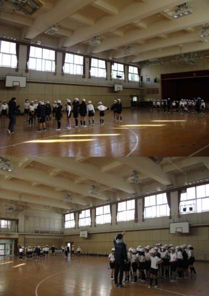 4年生が体育の時間、とっても楽しそうに大なわとびを行っていました。