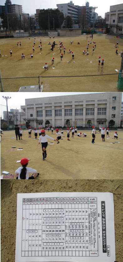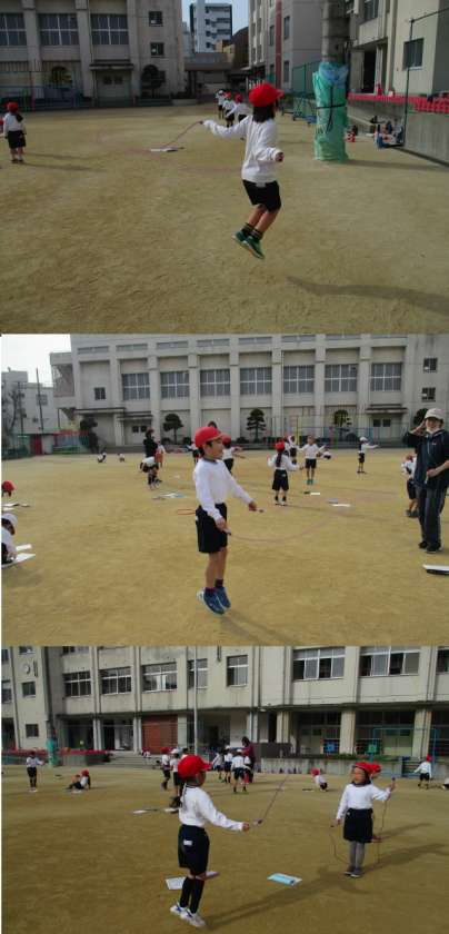 1月13日(金)1年生が、体育科の時間に、なわとびの練習を行っていました。りょうあしとび、にじゅうとび、こうさとびといろんな技に挑戦します!できたら、何回とべたか、なわとびカードにチェックします。