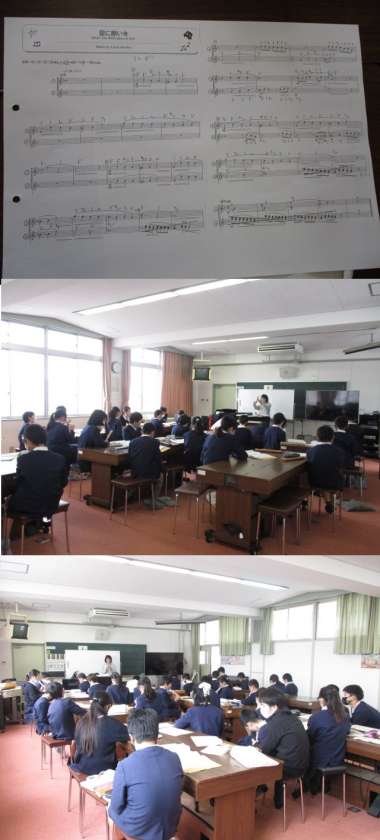 6年生が、リコーダーを練習していました。1つ1つの音を先生と確認しながらふきます。パートに分かれて、ふくところもあり、美しいハーモニーになります。