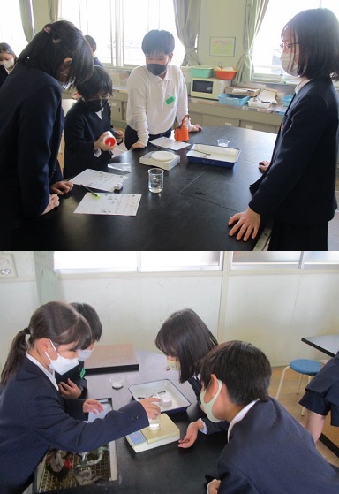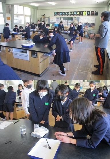 5年生が理科の時間に、「もののとけ方」の学習で実験をしていました。