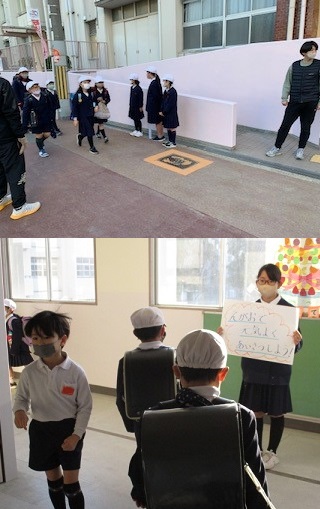 廊下でもメッセージをもってあいさつを呼びかける様子が見られました。