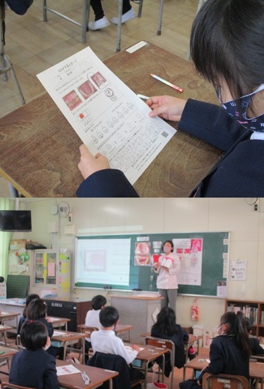2月1日(水)2年生が、歯科衛生士の方に来ていただき、「歯みがき指導」を受けていました。はみがき名人カードをもとに、口の中の観察をしたり、口の体操をしたり、歯磨きのコツを教えてもらったりしました。