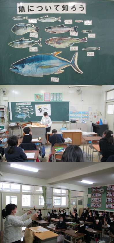 4年生が食に関する指導の学習に取り組んでいました。「魚について知ろう」というテーマです。魚にはたくさんの種類があり、給食にもたくさん使われていることや、魚に含まれるたくさんの栄養素を知りました。最後は、魚が苦手な人に魚のよさを伝える台詞を考え、発表しました。