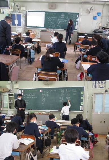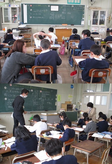 3年生が算数科の時間、2けた×2けたの筆算の仕方を習熟度別学習で取り組んでいました。