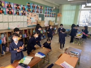 明日の学習参観に向けて1年生が発表の練習をしていました。自分ができるようになったことや得意なことをグループでそれぞれ練習しています。