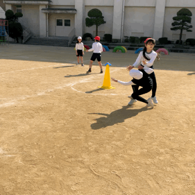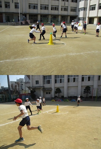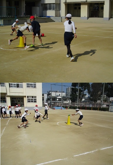 3年生が体育科の時間に、スポーツおにゲームに取り組んでいました。