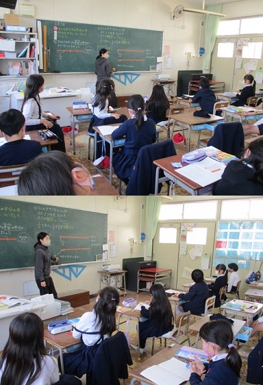 もとの大きさの半分の半分はいくつになるかなど、分数のかき方や意味をみんなでしっかり考えていました。
