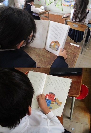 2年生が国語科の時間に、「ないた赤おに」の学習をしていました。