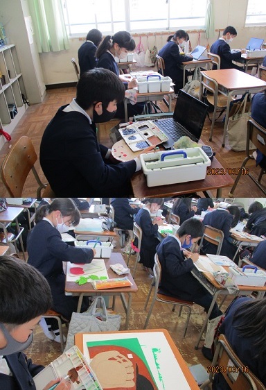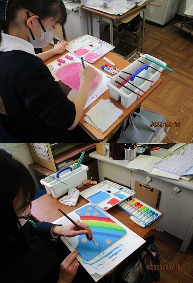 5年生が図画工作科の時間に、「白板づくり」に取り組んでいました。