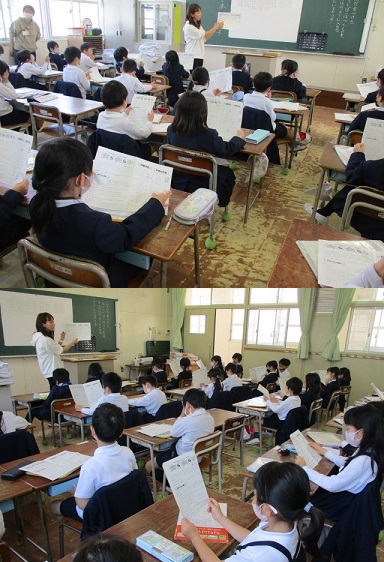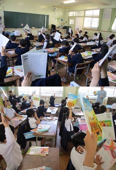 2年生が学級開きで、担任の先生から教科書やプリントをもらい、新しいクラスメイト一緒に活動をしていました。