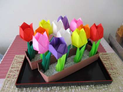 給食室では、調理員さんが素敵なチューリップを作ってくださいました。今年度も、安心安全な給食をよろしくお願いします。