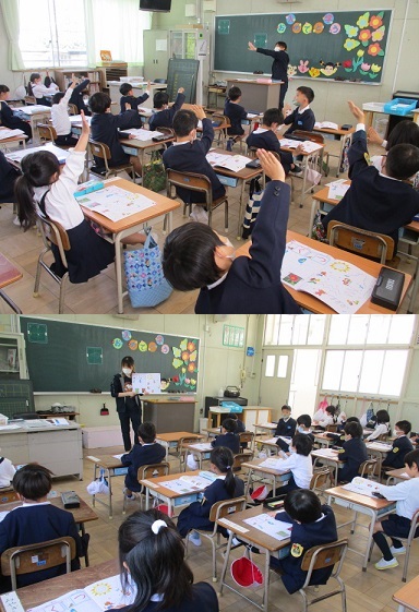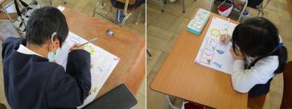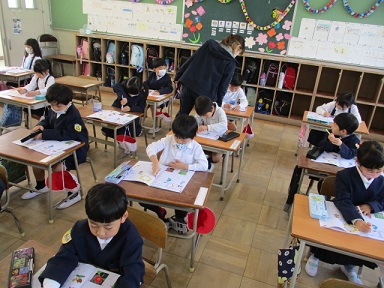 1年生が国語科の時間に、「ひらがなのおけいこ」を学習していました。
