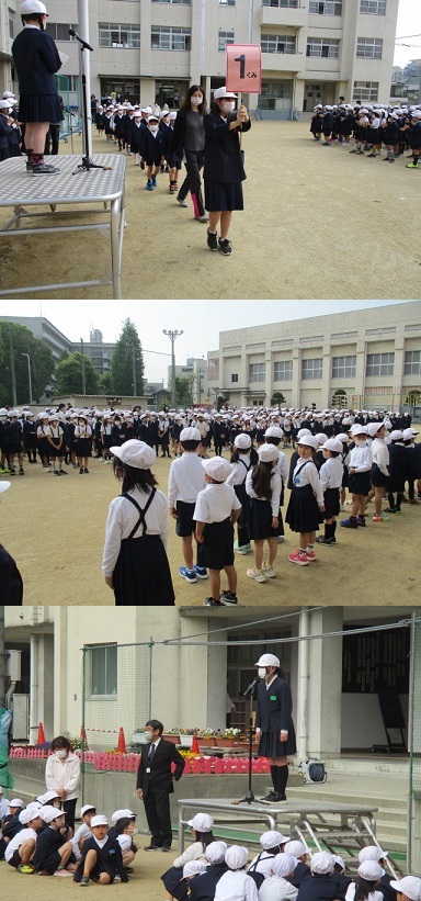 4月20日(木)朝から児童会主催の「1年生よろしくね集会」が運動場でありました。