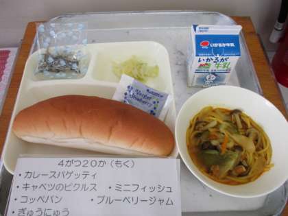 コッペパンと小袋のブルーベリージャムだったので、1年生の教室に行って、開け方の説明をしました。小さな手で、みんな上手に開けることができていました!