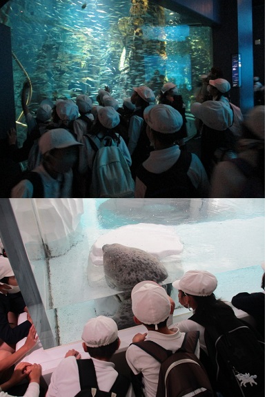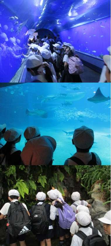 3年生が海遊館・サンタマリア号クルーズへ行きました。海遊館では、大きな水槽の前で、ペンギン、イルカ、ジンベイザメ、エイや、様々な魚たちなど、たくさんの海の生き物を見て、喜んでいました。