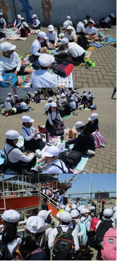 海遊館のあと、お弁当を食べてから、サンタマリア号に乗りました。45分間、大阪湾をクルーズしました。風が心地よく、子どもたちは海の景色を楽しんでいました。