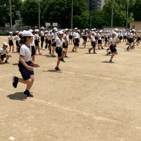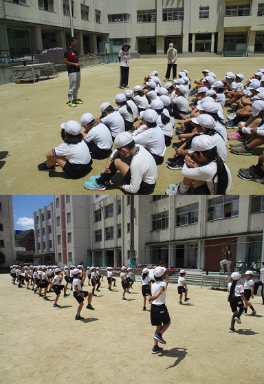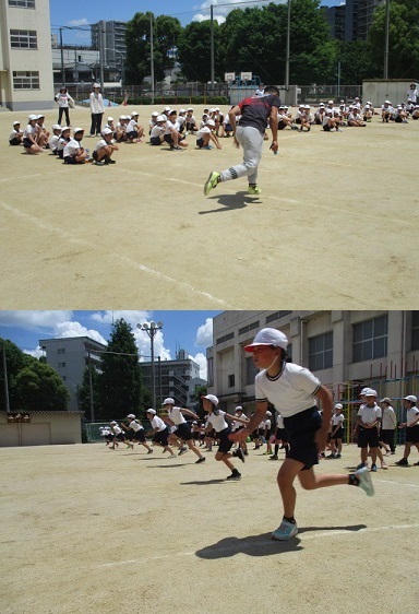 同じく、出前授業で4年生が50m走のよりよい走り方を教わっている様子です。