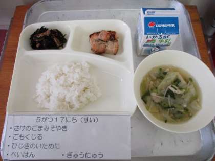 1 北海道でした!鮭の漁獲量日本一の県です。大阪市の給食は、国産の食材をなるべく使用するようにしています。安心安全、栄養満点給食です!