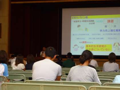 大阪市教育委員会キャラバン隊の方を講師としてお招きし、教育講演会を行いました。「子どもの生きる力をはぐくむ家庭の力」というテーマで、データをもとに今の子どもたちの生活の様子や課題などを明らかにし、学校、保護者、地域が協力して子どもたちをはぐくんでいくことを教えていただきました。